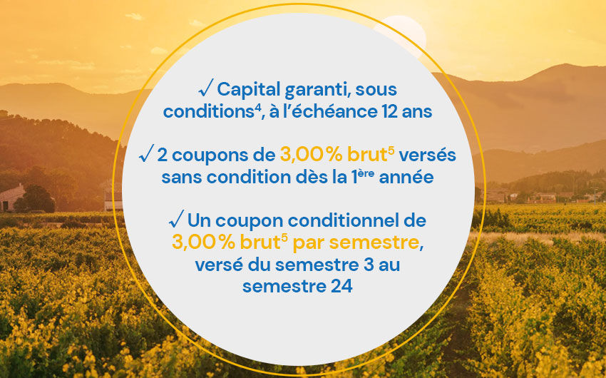 - Un coupon inconditionnel de 3,00 % brut(5) versé dès la première année aux semestres 1 et 2, quel que soit le niveau du taux TEC 10 ans.